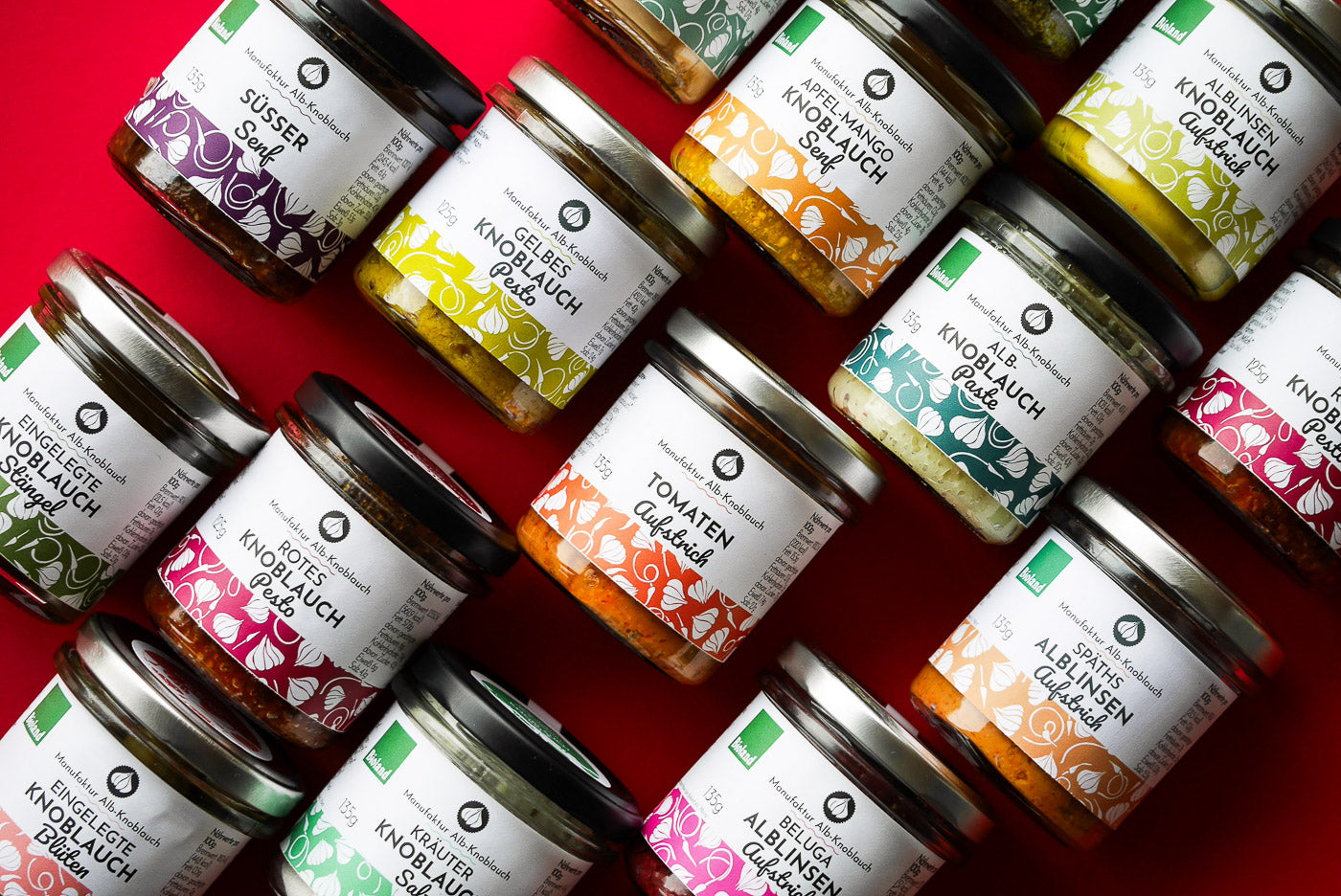 Wir sind Szilvi und Max mit Team: Karin und Fritz und wir pflanzen auf unseren Äckern auf der Schwäbischen Alb viele Knoblauchsorten biologisch an. In der hofeigenen Manufaktur entwickeln und stellen wir verschiedene Knoblauchspezialitäten her.