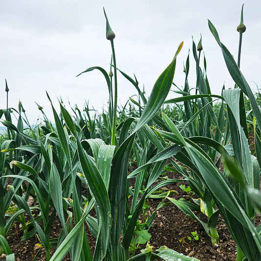 Fra den 3. juni tilbyder vi frisk hvidløg, og fra slutningen af juli til starten af august tilbyder vi tørret, holdbart hvidløg.