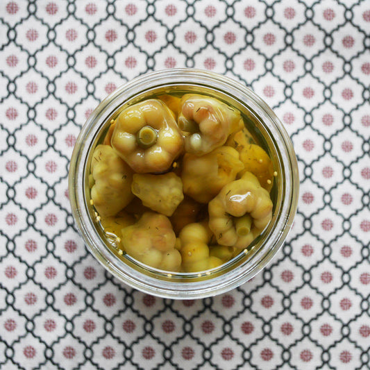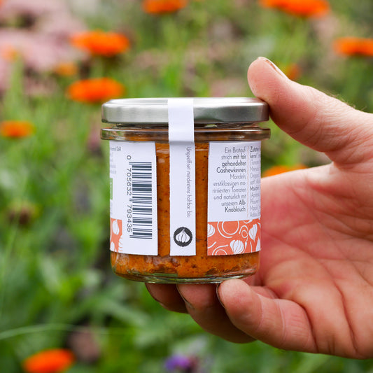 På denne side tilbyder vi pestoer, smørbart, sennep, syltede agurker, pastaer og salt. Naturligvis er alt økologisk og omhyggeligt, kærligt og passioneret håndlavet. Alle opskrifter er udviklet af os. Vores fire børn har altid det sidste ord om produkternes smag, farve og intensitet. De er fremragende, ærlige kritikere...