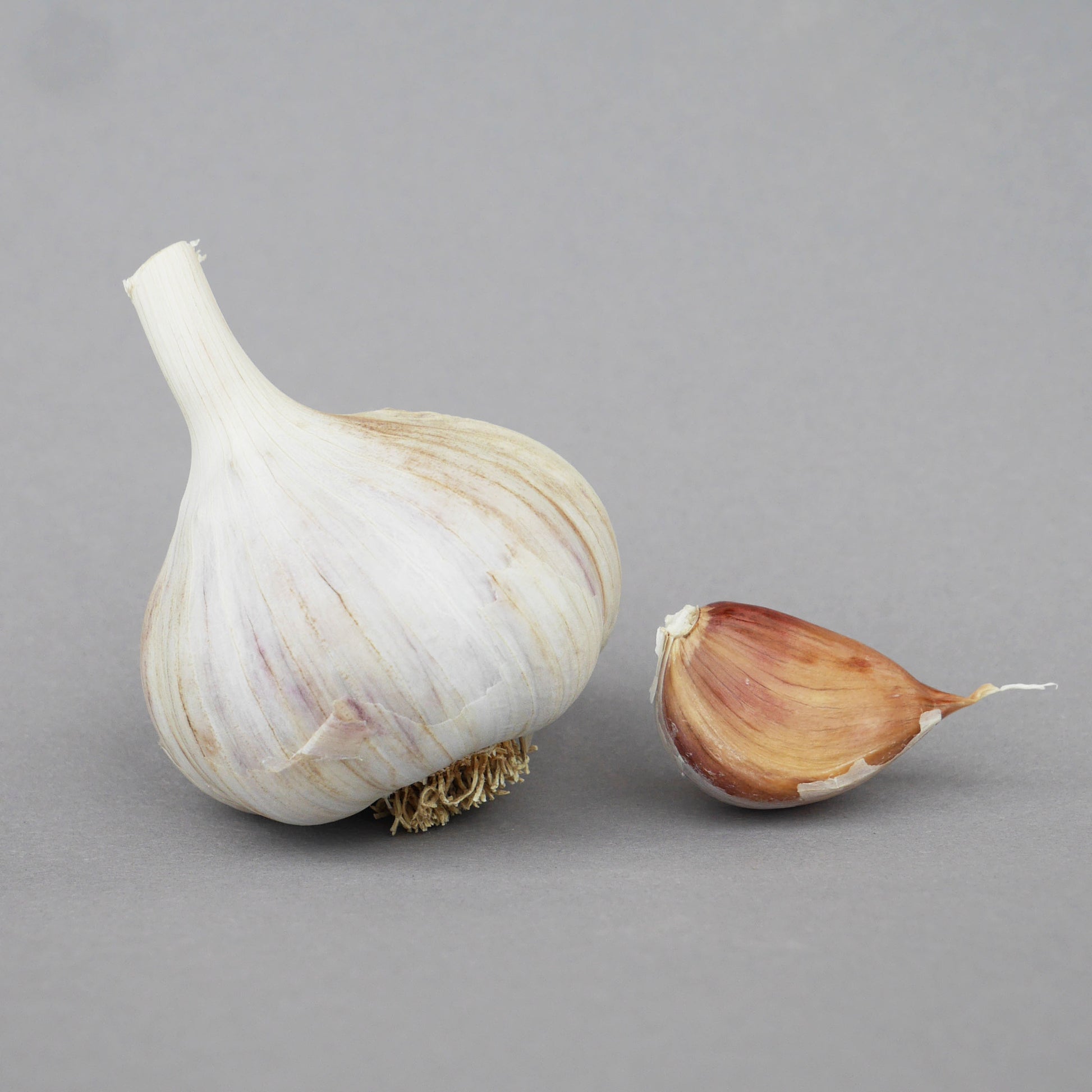 Denne hårdnakkede hvidløg stammer fra Sydkorea. Den er kendt for sin skarpe og krydrede smag. Den har smukke, silkeagtige, let lillastribede ydre skal og mellemstore fed. Smagen er meget karakteristisk, så brug den sparsomt i madlavning. Det er en stilkdannende sort. Holdbarhed ved korrekt opbevaring: indtil december-januar. Fås fra nu til cirka december. Økologisk, fra vores egen dyrkning.